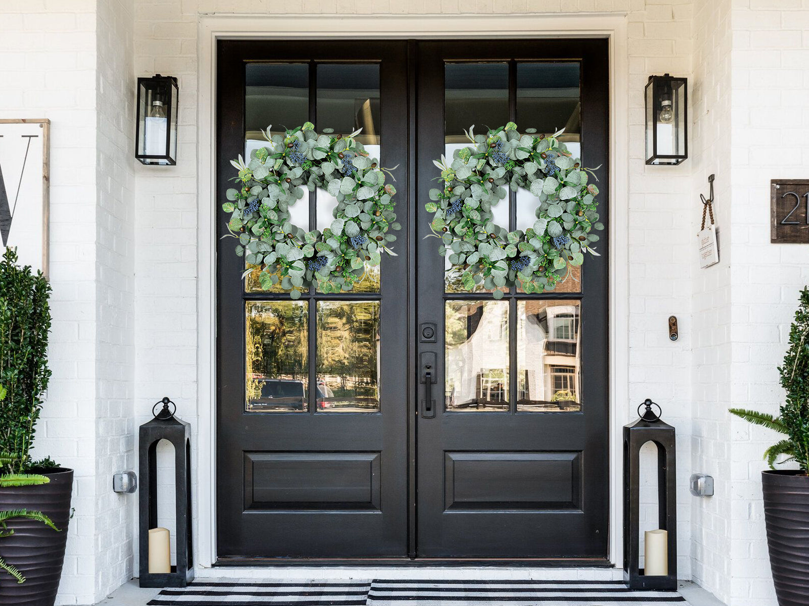 24 inch Year Round Eucalyptus Wreath for Front Door & Outdoor Decor