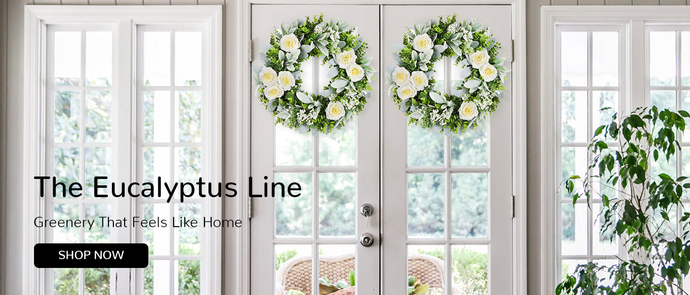 Naturally graceful, our eucalyptus wreath brings soft green tones and effortless charm to any space. With lifelike leaves and a relaxed, airy shape, it’s the perfect accent for year-round decor.