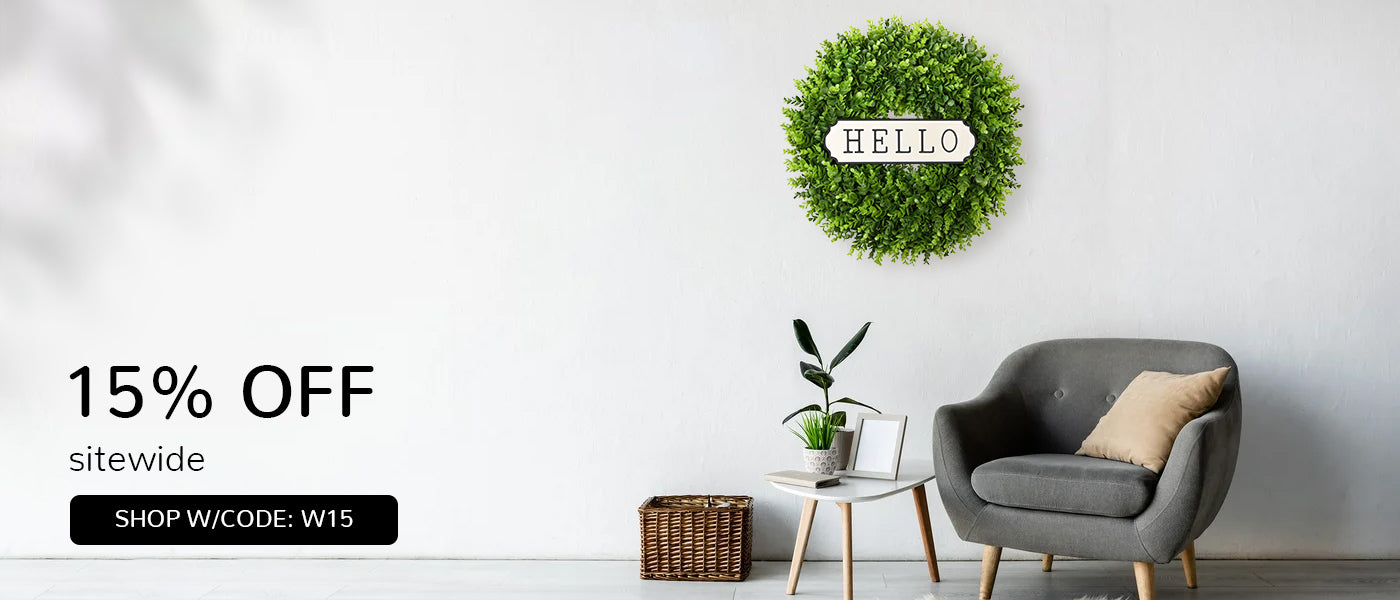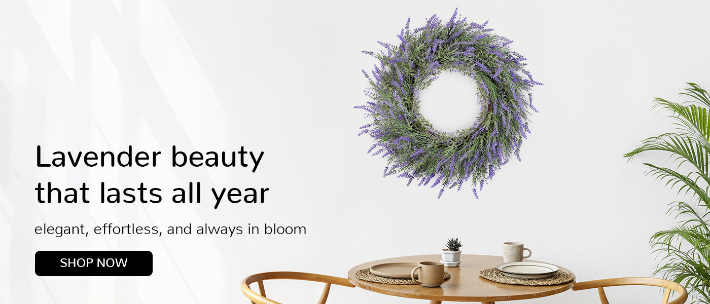 With soft purple blooms and lifelike greenery, it’s a beautiful accent for doors, walls, or mantels, perfect for adding a touch of serenity all year long.