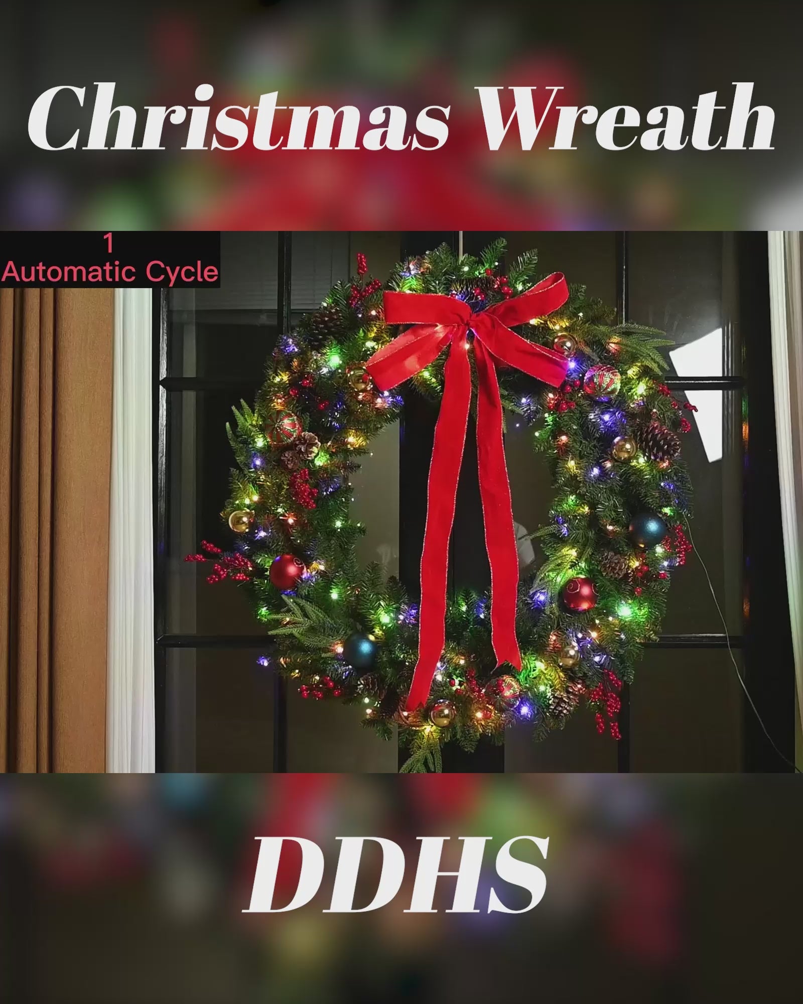 This giant Christmas wreath arrives fully adorned with red ornaments, pinecones, berries, and a festive red bow, no extra decorating needed. It’s ready to hang and sure to turn heads with its vibrant, classic design.